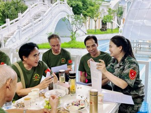 “文才哥,你身體越來越健朗咯喲,你是咋子保養(yǎng)的?”“昌林!昌林!我們在這兒,你快點過來,挨到我們坐,幾十年沒見你了,我們幾個今天一定要把這幾十年沒說的話說安逸!”走進老兵們所在的茶話區(qū)域,聲浪一浪高過一浪,交流幾乎靠吼,現(xiàn)場相聚的氛圍特別熱鬧、特別溫馨。