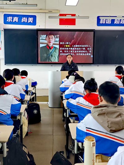 丁老深情講述了戰(zhàn)友們?cè)跇O端艱難的條件下,解放軍援越抗美部隊(duì)?wèi)?zhàn)友們克服重重困難,圓滿完成公路修筑任務(wù)的感人事跡。他緬懷了在戰(zhàn)爭(zhēng)中英勇獻(xiàn)身的烈士們,他們用鮮血和生命詮釋了人民解放軍的堅(jiān)強(qiáng)意志和崇高的愛國(guó)主義精神。一個(gè)個(gè)感人至深的英雄故事,一幅幅驚心動(dòng)魄的戰(zhàn)斗畫面,讓在場(chǎng)的每一位同學(xué)深受觸動(dòng),熱淚盈眶。
