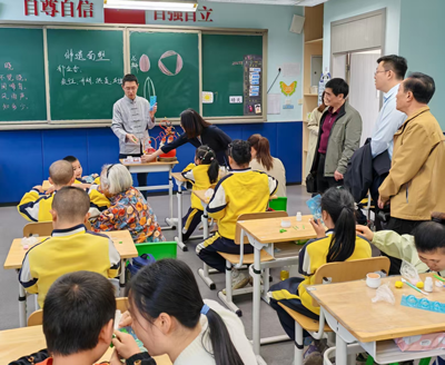 為全力推進(jìn)“非遺進(jìn)特教”活動的有序有效開展,確保三年行動計劃的落地落實,4月9日,區(qū)關(guān)工委組織開展“非遺進(jìn)特教”專題調(diào)研活動。調(diào)研人員一行實地參觀了特教中心特教實踐基地、校企業(yè)共建“家長工作坊”。大家走進(jìn)非遺教學(xué)課堂,現(xiàn)場觀摩由非遺傳承人為殘障孩子及陪護(hù)家長們精心設(shè)計、課程安排的繩編、面塑等非遺文化特教服務(wù)。在學(xué)校文化墻,大家親身感受由學(xué)校35個殘障孩子通過近半年的非遺特教而親手制作的200多件繩編、紙藝等非遺作品。