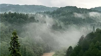 山谷中的森林羞澀地生出霧靄