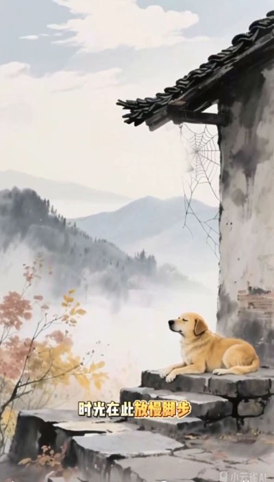 老屋檐下,風(fēng)鈴靜默,蛛網(wǎng)在微光中輕輕顫動(dòng),仿佛連時(shí)間也放慢了腳步,不忍驚擾這份寧靜。一只黃狗懶洋洋地臥在青石階上,瞇著眼,數(shù)著天上緩緩游走的云片——那云,潔白松軟,像極了兒時(shí)母親晾在竹竿上的棉布,干凈、溫暖,帶著陽光曬透的清香。而當(dāng)一縷炊煙裊裊升起,秋便有了最柔軟的筆觸。它不聲不響,在青瓦之上輕輕寫下暖意,像極了母親在廚房忙碌的背影,無聲無息,卻讓人心底生出無限安穩(wěn)與依戀。