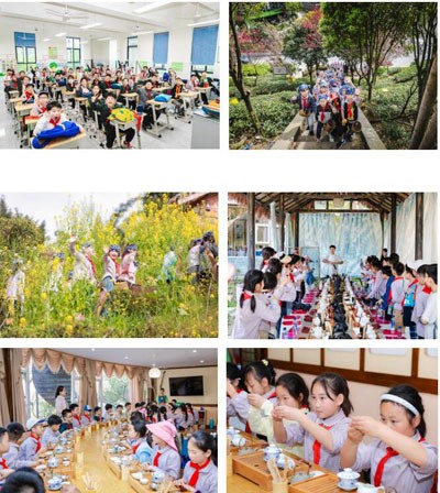 子美校區(qū)的茶文旅研學(xué)以“三階課程鏈”體現(xiàn)育人匠心,行前重文化浸潤(rùn),行中強(qiáng)勞動(dòng)體悟,行后促文化傳承。讓學(xué)生在采制烹飲間感悟“一葉載乾坤”的文化厚度,知道茶的味道,初步讀懂這片東方樹葉里蘊(yùn)含的“精、行、儉、德”天人合一的人文精神與民優(yōu)良傳統(tǒng)。
