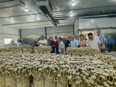 成都匯菇源公司食用菌生產(chǎn)基地是成都市老科協(xié)、郫都區(qū)老科協(xié)的“科技支農(nóng)助農(nóng)工作聯(lián)系點”。在成都匯菇源公司行政主管黃玲帶領(lǐng)與解說下,大家參觀了食用菌工廠化、智能化、可視化生產(chǎn)線,了解70倍于傳統(tǒng)農(nóng)業(yè)畝平效益的工廠化農(nóng)業(yè),身臨其境感受科技創(chuàng)新為現(xiàn)代農(nóng)業(yè)注入的無窮活力,切身體驗新質(zhì)生產(chǎn)力帶來的農(nóng)業(yè)非凡效力。