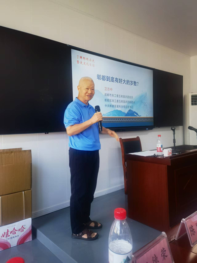 郫都區(qū)老科協(xié)黨總支書(shū)記衛(wèi)志中以“了解郫都?xì)v史,堅(jiān)定文化自信”為主題,從歷代關(guān)于“古蜀都城”的典籍記載談起,到如數(shù)家珍地展示郫都區(qū)的文物出土,以文物考古成果為依據(jù),同時(shí)采用歲月加減的算數(shù)方式,實(shí)證了《郫都到底有好大的歲數(shù)?》這個(gè)困惑了四川史學(xué)界了多少年的課題?! ?/p>