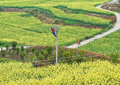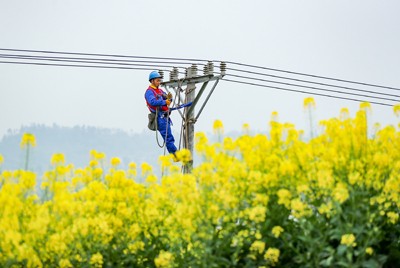 2025年3月12日,國家電網四川省華鎣市供電公司的志愿者在永興鎮(zhèn)大佛山村檢修供電線路,確保春耕生產用電。