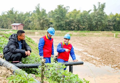 2025年3月12日,國家電網四川省華鎣市供電公司的志愿者在祿市鎮(zhèn)涼水井村稻蝦基地為業(yè)主保電供水,確保春耕生產順利進行。