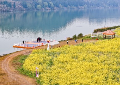 華鎣市文史研究員首先來到武勝縣沿口鎮(zhèn)江家壩子,參觀利用嘉陵江的灘涂種植的彩色油菜花田。色彩斑斕的花田像一條彩帶,與碧綠的嘉陵江水相互映襯,構成黃綠相間的美麗畫卷。漫步花海,微風拂過,花浪翻涌,使人心曠神怡。讓研究員眼前一亮的是:游客不僅可在油菜花海感受爛漫春光,也可參與戶外燒烤、江畔野炊、沙灘摩托和戶外研學等多種活動,盡情享受鄉(xiāng)村旅游的獨特魅力。