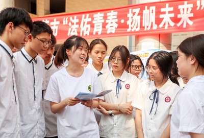 四川省華鎣市針對(duì)高中三年級(jí)學(xué)生即將畢業(yè)進(jìn)入高?;虿饺肷鐣?huì),由市委政法委牽頭組織公安局、檢察院、法院、司法局、教科體局和市法學(xué)會(huì)、關(guān)工委、老年志愿者法治宣講團(tuán)等單位,專門來到華鎣中學(xué)開展“法佑青春,揚(yáng)帆未來”主題宣傳活動(dòng)。通過法治講座、法治演講、法治掛圖展覽及法治文藝節(jié)目表演等形式,宣傳《未成年人保護(hù)法》、《預(yù)防未成年人犯罪法》和校園反欺凌、反網(wǎng)絡(luò)詐騙等知識(shí),引導(dǎo)學(xué)生樹立法治底線,強(qiáng)化法治觀念與自我保護(hù)能力。