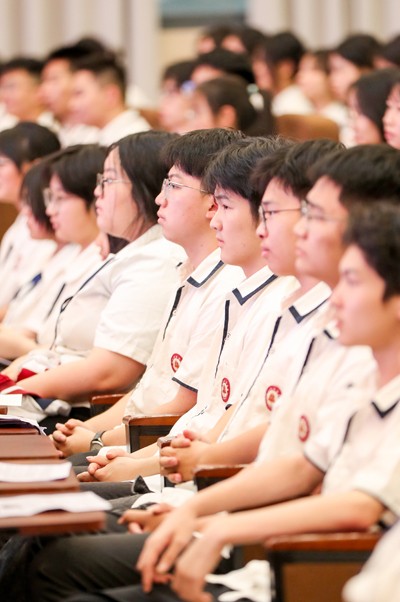 2025年5月13日,四川省華鎣中學(xué)的學(xué)生在“法佑青春,揚(yáng)帆未來”主題宣傳活動(dòng)中,認(rèn)真聽取法治講座。(邱海鷹/攝影報(bào)道)