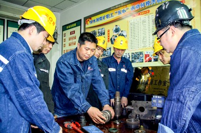 2009年工作室成立以來,何模洪創(chuàng)新構(gòu)建“三位一體”教學(xué)模式:理論課堂設(shè)在會議室,實操培訓(xùn)放在井下現(xiàn)場,創(chuàng)新研討就在車間。這種“學(xué)用結(jié)合、研戰(zhàn)一體”的培養(yǎng)模式,讓理論知識與實踐應(yīng)用深度融合。