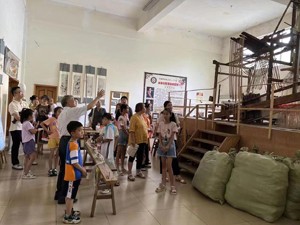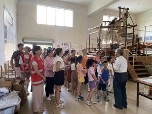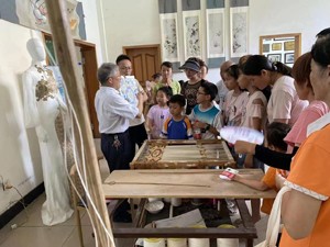 談起蜀錦,胡光俊這位滿頭白發(fā)的老人立即打開了話匣子,他談古論今、滔滔不絕。他從如何保護、傳承、發(fā)展國家級非物質(zhì)文化遺產(chǎn)蜀錦織造技藝等方面介紹。他還帶領大家參觀陳列館里大量圖片,邊看邊向孩子和家長們宣講了蜀錦相關的傳統(tǒng)織機、錦畫以及服裝等,讓大家切身感受到了非遺傳統(tǒng)文化的魅力。