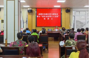 雙流區(qū)柔力球協(xié)會會長石淑珍作了題為《積極參與老年友好型社區(qū)建設(shè) 做好新時代的友好老年人》的宣講。協(xié)會秘書長常曉蘭主持宣講會,56名會員參加了宣講會。