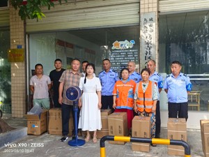活動(dòng)中,馬家寺社區(qū)黨委副書記李國(guó)芳,老協(xié)會(huì)長(zhǎng)龐云貴和志愿者們?yōu)?個(gè)小區(qū)保安,市場(chǎng)保潔、貨車司機(jī)等戶外勞動(dòng)者們送上防暑藥藿香正氣液,礦泉水,10臺(tái)電風(fēng)扇等慰問品。讓戶外的勞動(dòng)者們休息時(shí)能吹吹電風(fēng)扇,喝水解渴得到?jīng)鏊?/p>