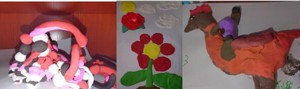 在春艷姐姐、小朱哥哥、李霞姐姐他們的帶領(lǐng)下,一個(gè)上午53個(gè)孩子的小手里便長出了鮮花、祥瑞和甜甜圈,羞羞的夢蓮?fù)瑢W(xué)也在大地上植出了參天大樹。