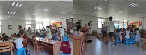 下午,慶梅姐姐變身班長,六個(gè)小組長應(yīng)聲而出,53個(gè)小孩分組就座,秩序井然。談自己、談父母、講心愿、談理想,53顆心漫天飛揚(yáng)。果然是金鳳棲居地,雛鳳清于老鳳聲。王湘同學(xué)讀故事,大家知道了甲兒母親的善良帶出了名動(dòng)天下的甲兒。