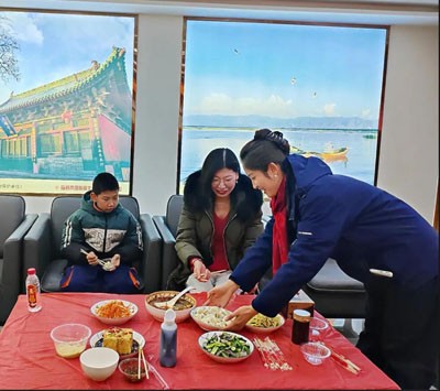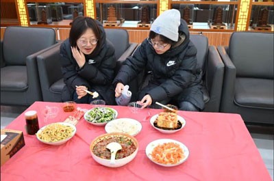 兩位東北大學(xué)生游客也感慨道:“來到這兒,就像回家一樣,特別感動(dòng)。大年初一,工作人員堅(jiān)守一線,還為我們準(zhǔn)備了熱氣騰騰的餃子,這段旅程會(huì)是我們一生最美好的回憶。”北京游客李女士稱贊:“沒想到景區(qū)工作人員這么熱情。今天我們一家三口參加了應(yīng)縣一系列春節(jié)活動(dòng),還喝了福水。從景區(qū)公眾號(hào)得知游客接待中心為游客準(zhǔn)備了晚餐,我們一家就過來了,感覺像回到自己家一樣親切?!睉?yīng)縣木塔景區(qū)以貼心服務(wù)讓游客在新春佳節(jié)感受到濃濃溫情。(王 晶 賀永智/文圖)