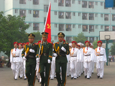 學(xué)校國(guó)旗班學(xué)生升旗訓(xùn)練 王小榮攝