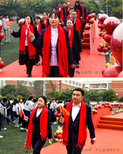 教師方陣步履鏗鏘,衣袂卷起知識的星火。