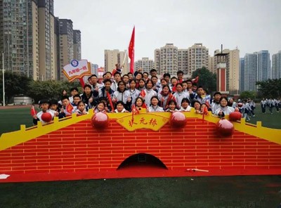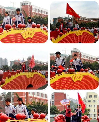 晨光初綻,初三師生踏著激昂的鼓點(diǎn),從“奮斗門”出發(fā),踏過象征智慧積淀的“狀元橋”,邁向滿載期許的“成功臺”。