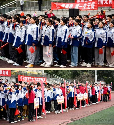 房憶婷主任的領(lǐng)誓聲如金石墜地,初三全體師生高舉右拳,聲浪撼動蒼穹: