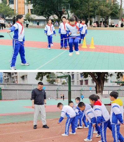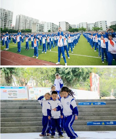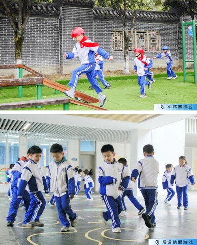 運動場統(tǒng)籌安排、增添軍體器械區(qū)、增添教學(xué)區(qū)地面游戲、開發(fā)三套室內(nèi)操、鼓勵社區(qū)鍛煉、家庭鍛煉,形成了全方位、多層次的體育活動空間,保障學(xué)生隨時隨地都能參與體育鍛煉。