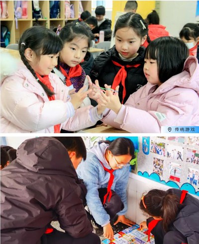 分學(xué)段規(guī)劃不同項目,每班彩旗引領(lǐng),杜絕站樁式活動,增添教學(xué)區(qū)地面游戲。家長志愿者參與指導(dǎo)“父母兒時的游戲”。