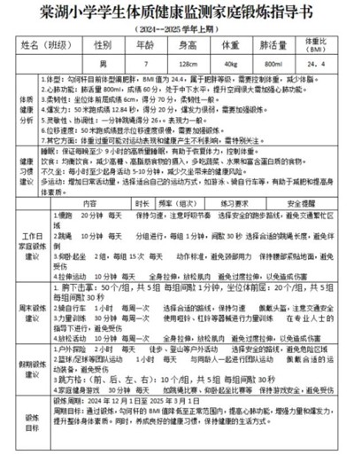 鼓勵校外鍛煉不少于30分鐘:通過個案化運動處方、體質(zhì)健康報告、居家鍛煉和社區(qū)鍛煉小貼士等方式鼓勵并指導(dǎo)家庭鍛煉和自主鍛煉,培養(yǎng)日常運動習(xí)慣與運動興趣。