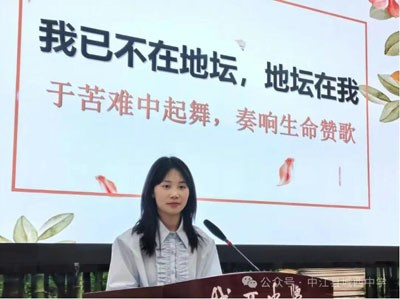 劉雨涵老師圍繞“苦難為泥,生命自有花開”這一主旋律,將《我與地壇》的哲思娓娓道來。她以細(xì)膩筆觸勾勒史鐵生先生筆下那座荒蕪卻盛滿生命哲思的園子,同時(shí)也用哲思的火種點(diǎn)燃夢想,激勵(lì)著莘莘學(xué)子:莫懼前路荊棘滿布,當(dāng)以苦難為砥礪,于廢墟之上綻放生命之花;莫嘆命運(yùn)跌宕起伏,應(yīng)以堅(jiān)韌為羽翼,于寒夜之中奏響不屈的贊歌。