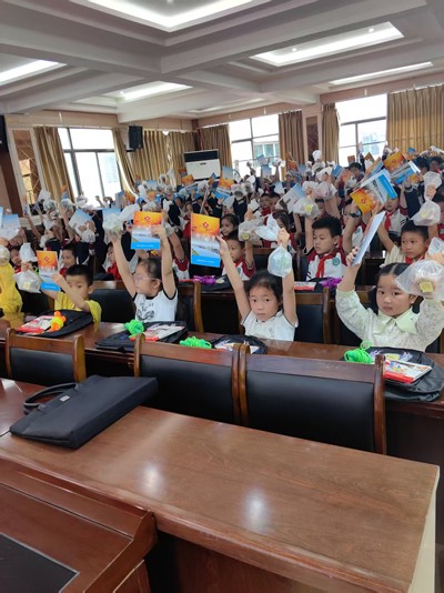 隨后,一場充滿愛意的物資捐贈儀式溫暖展開?!拔謇稀狈娢牡瘸蓡T和學(xué)校老師們,帶著滿滿的關(guān)懷與祝福,為留守兒童送上了精心準(zhǔn)備的慰問品。有印著“沿心筑夢 關(guān)工同行”字樣的筆記本,那一個個工整的字跡仿佛在訴說著對孩子們夢想的守護(hù);嶄新的書包,承載著知識的重量,也寄托著對孩子們未來的美好期許;實(shí)用的文具,將成為孩子們學(xué)習(xí)道路上的得力伙伴;還有象征著團(tuán)圓與甜蜜的月餅,讓孩子們在節(jié)日里感受到家的溫暖。小易作為留守兒童代表上臺發(fā)言,他稚嫩卻堅定的聲音,表達(dá)了對關(guān)工委和學(xué)校老師們的感激之情,也展現(xiàn)了留守兒童積極向上、勇敢面對生活的精神風(fēng)貌。