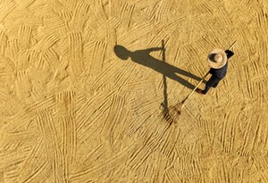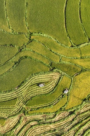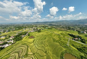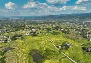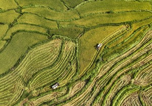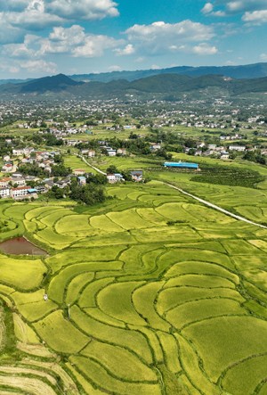 初秋時節(jié),位于四川東部的廣安市種植的約200萬畝水稻相繼成熟,?連片翻著金浪的水稻猶如鋪設(shè)在大地上的“金色地毯”,在藍天白天映照下,把山村裝點得格外美麗。當?shù)剞r(nóng)民在田間忙碌搶收水稻,確保稻谷顆粒歸倉。
