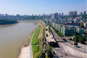 9月6日,拍攝的剛剛改造完成8月30日通車的四川省廣安市廣安區(qū)老城區(qū)濱江路延伸段道路。
