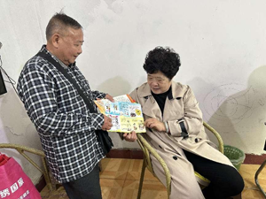 志愿者向共樂鎮(zhèn)、自由村(社區(qū))干部發(fā)送防艾宣傳資料