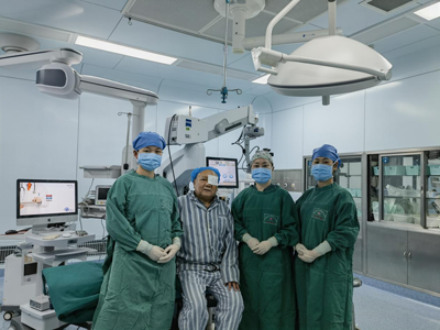 圖為:眼科主任牟琳教授親自帶領醫(yī)護團隊成功為72歲患者李立權實施白內(nèi)障手術