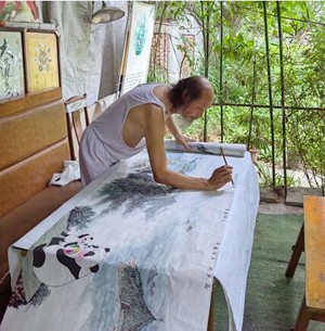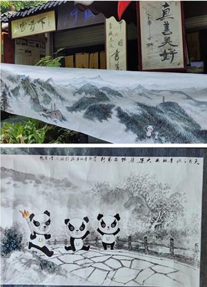 成都大運(yùn)會期間,巨幅水墨長卷《天府之源 大運(yùn)熊貓》將在中國道教發(fā)源地青城山展示。(都江堰市老科協(xié))
