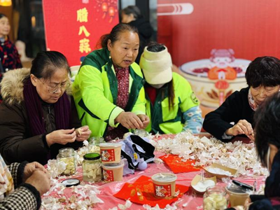 活動現(xiàn)場,一大鍋鍋熱氣騰騰、香氣四溢的臘八粥成為了絕對的焦點,居民們紛紛排隊品嘗,享受著這份傳統(tǒng)美食帶來的溫暖與甜蜜。此外,活動還特別設(shè)置了體驗制作臘八蒜的環(huán)節(jié),居民們在工作人員的指導(dǎo)下,親手腌制臘八蒜,體驗傳統(tǒng)習(xí)俗的樂趣。