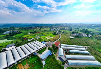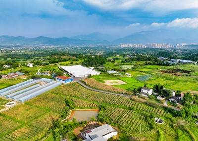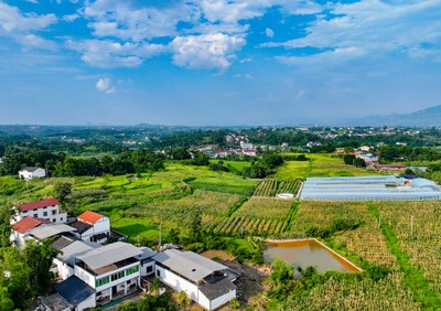 盛夏時節(jié),四川省華鎣市永興鎮(zhèn)馬架坪村連片泛著金黃的玉米、綠油油相繼抽穗的水稻和用于種植養(yǎng)殖業(yè)的白色大棚及星羅棋布的民居,在藍天白云映襯下色彩斑斕,如披錦繡,把鄉(xiāng)村點綴得格外和美。