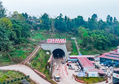 2024年12月31日,由中鐵十局承建的已貫通的位于四川省廣安華鎣市明月鎮(zhèn)境內(nèi)的西渝高鐵康渝段站前十一標(biāo)的草靶場(chǎng)隧道入口。