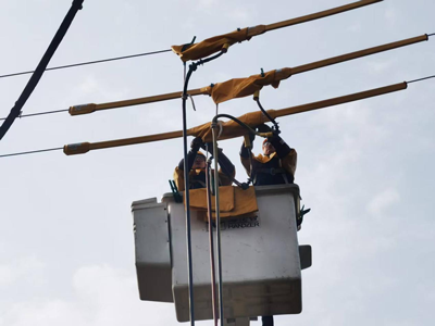 上午8時,隨著現(xiàn)場負責人一聲令下,10kV高觀線檢修施工正式開始。此次檢修工作任務(wù)艱巨,不僅要拆除老舊線路、電桿,還要架設(shè)新線路,改接搭頭。施工過程中,工作人員嚴格按照施工工藝、質(zhì)量要求,確保改接線路接入系統(tǒng)安全穩(wěn)定運行。與此同時,發(fā)電車持續(xù)運轉(zhuǎn),將10千伏高壓電源源不斷地輸入到這條10千伏線路上,保障了沿線2000余戶居民的正常用電。