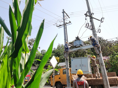 6月11日上午,在廣安市伏龍鎮(zhèn)龍?zhí)脺洗宓纳搅鹤由弦黄G油油的玉米地里,一群身穿工裝的電力工人正在緊張有序開展綜合配電箱增容改造工作。近年來,在開展鄉(xiāng)村振興、家電下鄉(xiāng)進(jìn)程中,廣大農(nóng)戶空調(diào)等大功率家用電器增多,對(duì)電力需求增大,原有的變壓器綜合配電箱已不能滿足負(fù)荷增長需求,需要進(jìn)行增容改造,以提高供電能力,解決供電卡脖子問題?!?/p>
