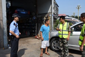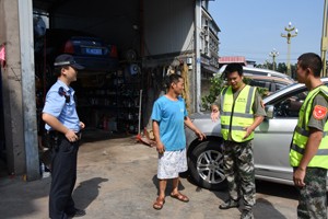 “老板,請(qǐng)你出來給你宣傳一下,這里是行人過路的地方,不能把車子停放在這里。”“不好意思,車子出了故障,馬上修理后就開走?!痹贕348國道旭陽鎮(zhèn)觀斗山路段,隊(duì)員劉琴、程偉正在對(duì)車主做宣傳。