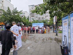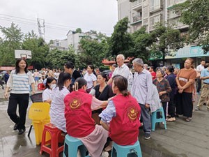 活動(dòng)前,九江街道老協(xié)負(fù)責(zé)人和鄒家場(chǎng)社區(qū)老協(xié)負(fù)責(zé)人以及志愿者們清理了場(chǎng)地里的積水,準(zhǔn)備了義診所需用品。組織前來(lái)義診的人們有序參加義診活動(dòng)。
