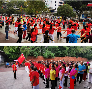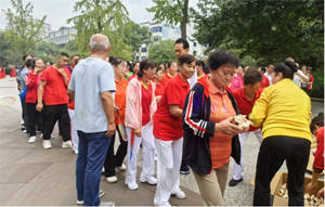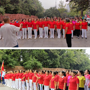 9月29日上午8時(shí),100多名隊(duì)員歡聚在雙流棠湖公園藝術(shù)墻廣場(chǎng),首先跳起了歡樂(lè)的圈圈舞。歡快的舞步,愉悅的氛圍,呈現(xiàn)出濃濃的節(jié)日氣氛。