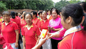 活動(dòng)在《歌唱祖國(guó)》《團(tuán)結(jié)就是力量》《學(xué)習(xí)雷鋒好榜樣》的嘹亮歌聲中正式開(kāi)始。區(qū)柔力球協(xié)會(huì)主席石淑珍主持并講話(huà)。她首先祝隊(duì)員們中秋國(guó)慶佳節(jié)快樂(lè)!隨后,向大家講述了“中國(guó)好人”廖良開(kāi)同志跨越3000公里替烈士戰(zhàn)友盡孝26年的先進(jìn)事跡。