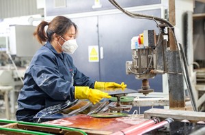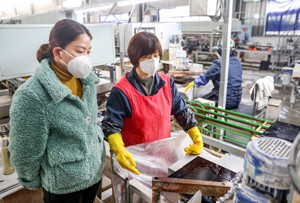 2024年2月19日,四川省華鎣市通過“春風(fēng)行動”留在家鄉(xiāng)的返鄉(xiāng)民工,在華鎣山經(jīng)開區(qū)領(lǐng)先微晶玻璃有限公司的新崗位上向老員工學(xué)習(xí)技能。(邱海鷹)