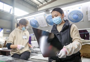 2024年2月19日,四川省華鎣市通過“春風(fēng)行動”留在家鄉(xiāng)的返鄉(xiāng)民工,在華鎣山經(jīng)開區(qū)領(lǐng)先微晶玻璃有限公司生產(chǎn)流水線上安心作業(yè)。