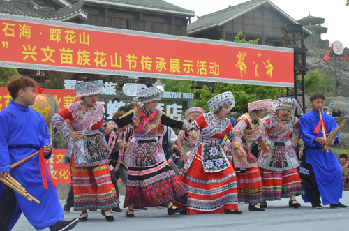 為推動文旅產(chǎn)業(yè)發(fā)展、促進文旅市場消費,全面提升興文城市形象,興文縣按照“景城聯(lián)動、政企互動”的辦節(jié)思路,于2024年4月22日在風景秀麗的石海景區(qū)舉辦以“浪漫石?!げ然ㄉ健睘橹黝}的“2024年四川·興文苗族花山節(jié)”按照花山節(jié)組委會的安排部署,興文縣苗族文化促進會組織開展了祭花桿、祭祀舞、聯(lián)歡舞、苗族文藝節(jié)目表演、擠蘆笙競賽、苗族女士盛裝展演賽等15項活動內(nèi)容。