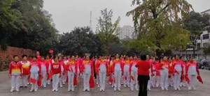 我們將象青松永遠(yuǎn)屹立在高高的山峰上。此時此刻,隊員們高高拋起紅綢,跳躍著!歡呼著!快樂著!為了把熱烈的氣氛推向高潮,大家又舉著小紅旗高歌《沒有共產(chǎn)黨就沒有新中國》巜革命人永遠(yuǎn)是年青》《團(tuán)結(jié)就是力量》。宏亮的歌聲響徹公園,給重陽節(jié)帶來了最熱烈而歡樂的氣氛。給棠湖公園廣埸增添了獨特的亮麗風(fēng)景。