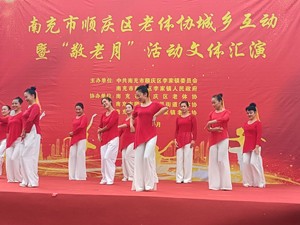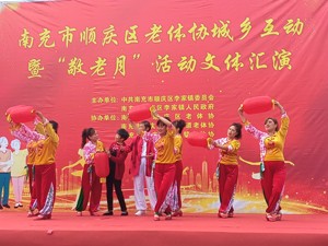 10月31日,四川省南充市順慶區(qū)李家鎮(zhèn)廣場人山人海,鑼鼓喧天,“城鄉(xiāng)互動·敬老月活動”文藝演出在這里隆重舉行。這是由順慶區(qū)李家鎮(zhèn)黨委、人民政府主辦,順慶區(qū)老體協(xié)健身球、健身舞蹈分會,李家鎮(zhèn)老體協(xié),舞鳳街道老體協(xié)協(xié)辦的“敬老月”城鄉(xiāng)互動文藝演出。旨在弘揚中華民族孝親敬老的傳統(tǒng)美德,努力營造"尊老、愛老、敬老"的良好社會氛圍。這次活動也是順慶區(qū)老體協(xié)組織開展的“九九重陽·城鄉(xiāng)互動”走進鄉(xiāng)鎮(zhèn)街道的第四站。順慶區(qū)老體協(xié)主席歐國平,副主席趙險峰、蔣克寬、劉元林,副秘書長寇志猛、鐘德斌、韓曉霞,李家鎮(zhèn)人民政府鎮(zhèn)長羅銳出席了文藝演出活動。安利女士主持文藝演出。