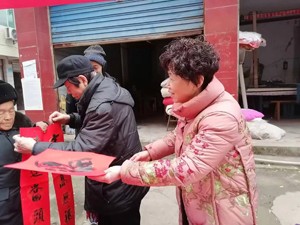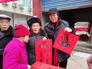 送春聯(lián)送祝福,墨寶飄香暖人心。趙大爺手拿春聯(lián)和福字,笑容滿面地對(duì)楊建國老師說:“感謝老專家不辭辛苦為我們送春聯(lián)送祝福,也祝愿老專家們新年快樂,身體健康!希望明年又能看見你們下鄉(xiāng)來喲。”(徐永萍)