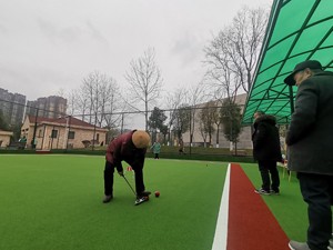順慶區(qū)老體協(xié)門球分會廖興普主席給同行介紹說,“我們新建的門球場是南充市標準最高、草坪最好的!大家建設門球場,最關鍵的是把好門球草坪質量關,這是大事!選擇門球草坪一定要堅持高標準,不能憑朋友關系選擇草坪?!痹摬萜河蒙蕘韰^(qū)分場地區(qū)域,看著真上檔次。女隊員茍大姐說,“這草坪,太漂亮、質量太好了!還有三天就是春節(jié)了,這是區(qū)政府送給我們的‘春節(jié)禮物’,太開心了!”(順慶區(qū)老體協(xié) 張先奎)